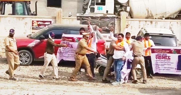 अचानक सुरू झालेली घोषणाबाजी पाहून प्रशासनाची एकच धावपळ उडाली यावेळी सर्व शिवसेना पदाधिकारी यांना प्रशासनाने ताब्यात घेतले.