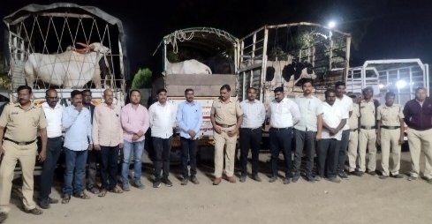 सदाफुले वस्तीवर कंपाऊंड मध्ये कत्तलीसाठी उपासपोटी बांधून ठेवलेल्या वीस जनावरांच्या जवळच कत्तल केलेल्या जनावरांचे हाड मांस शिंगे एक टन अंदाजे आढळून आले पोलीसांनी सर्व ताब्यात घेऊन पंचनामा केला गुन्हा दाखल करण्याची प्रक्रिया रात्री उशिरा पर्यंत सुरू होती.