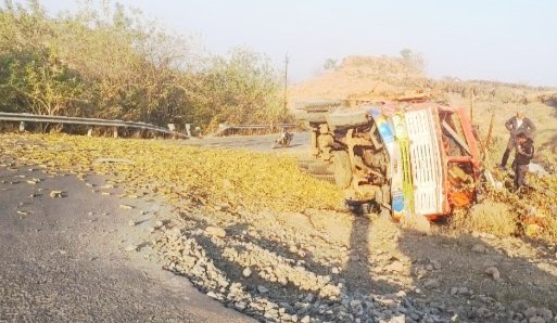 साकत घाटात अपघाताची मालिका सुरूच उसाचा ट्रक पलटी, चालक जखमी