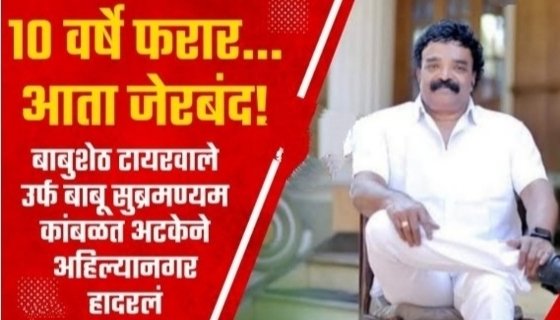 गेल्या १० वर्षापासून पोलिसांच्या हातावर तुरी देऊनफरार असलेल्या शिवसेना शिंदे गटाच्या अहिल्यानगर जिल्हाध्यक्षाला अंभोरा पोलिसांनी बेड्या ठोकल्या आहेत. बाबूशेठ टायरवाले उर्फबाबू सुब्रमण्यम कांबळत असे या नेत्याचे नाव असून,२०१६ मध्ये एका पवन ऊर्जा प्रकल्पा वरील मजुरावर प्राणघातक हल्ला केल्याच्या गुन्ह्यात तो मुख्य आरोपी होता.