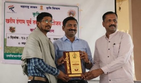 कर्जत उपविभाग, येथे आयोजित खरीप हंगाम पूर्व नियोजन बैठकीत साकत येथील कृषी सहाय्यक समाधान सोनवणे यांचा उत्कृष्ट व प्रामाणिक कामगिरीबद्दल सन्मानचिन्ह देऊन गौरव करण्यात आला. दि. १७ एप्रिल २६ रोजी हा कार्यक्रम झाला.